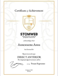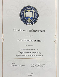 Анна Андреевна специализируется на реставрации зубов, лечении кариеса и корневых каналов. Для неё важно, чтобы лечение всегда было качественным и понятным для пациента. Активно использует в работе микроскоп и бинокуляры. Регулярно совершенствует свои профессиональные знания и умения, посещая различные семинары и мастер-классы