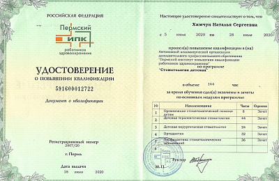 Пермский институт повышения квалификации работников здравоохранения (стоматология детская), повышение квалификации