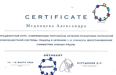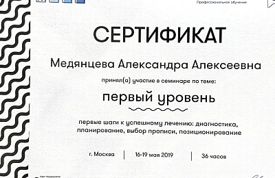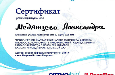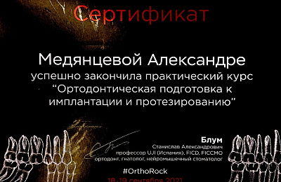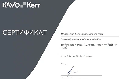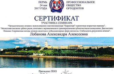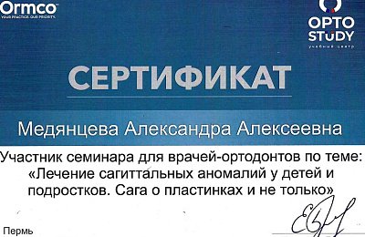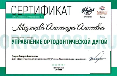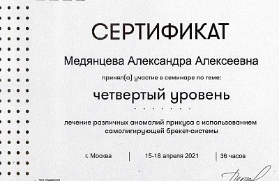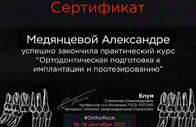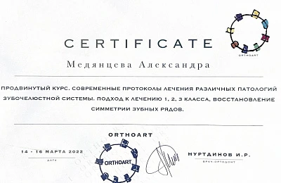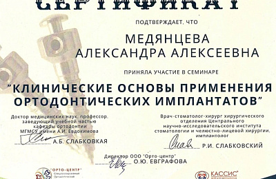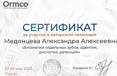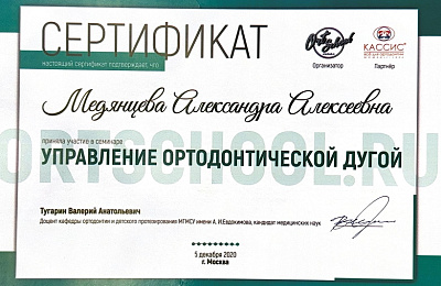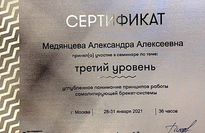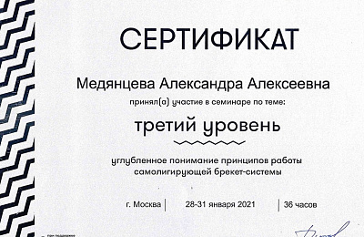- Регулярно совершенствует свои профессиональные знания и умения, посещая различные семинары и мастер-классы ведущих ортодонтов России.