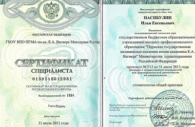 Пермская государственная медицинская академия им. акад. Е.А. Вагнера (стоматология), базовое образование