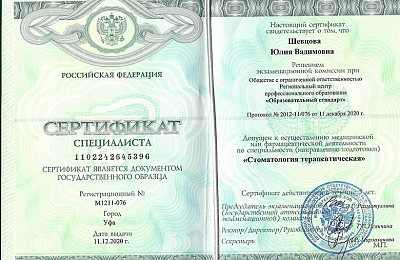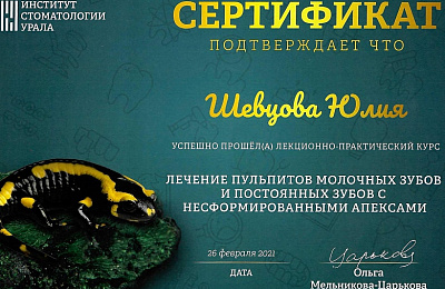 ООО "Институт стоматологии Урала", программа повышения квалификации "Лечение кариеса, пульпитов и периодонтитов"