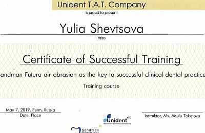 Sandman Futura air abrasion as the key to successful clinical dental practice, Ms. Aisulu Tokatova