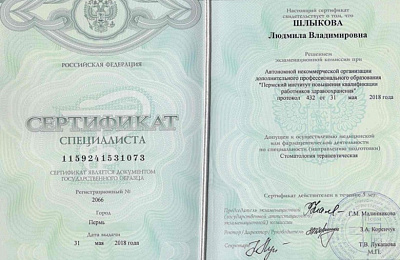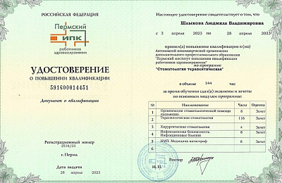 "Пермский институт повышения квалификации работников здравоохранения (стоматология терапевтическая)