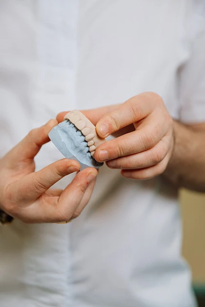 Протезирование начинается с консультации, диагностики и составления плана. Зубы подготавливают: проводят лечение, при необходимости – гигиену, формируют опору. Затем снимают слепки или выполняют 3D-сканирование.
