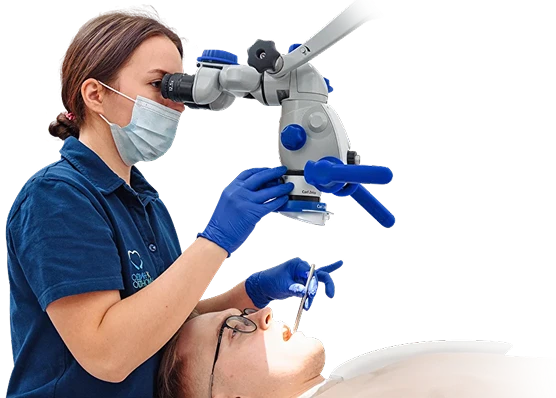 Многократное увеличение значительно повышает качество лечения. Врач может рассмотреть самый тонкий канал и спасти зуб в сложнейших случаях.